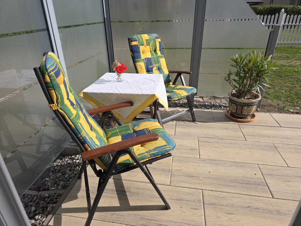 Am Eingang der Ferienwohnung auf der Ostseite können Sie bei schönem Wetter die Morgensonne genießen! Gartenmöbel sind vorhanden.